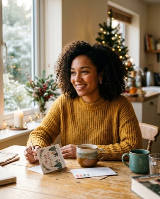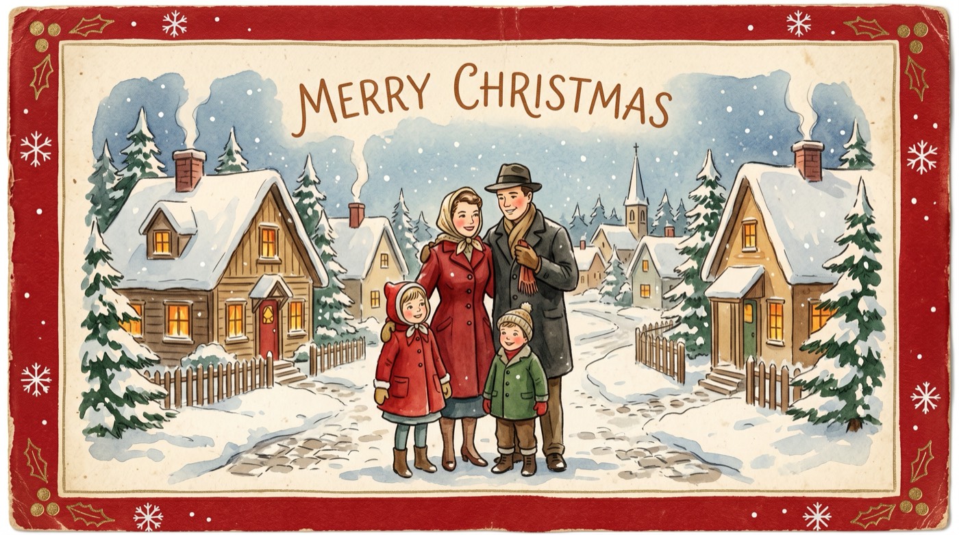 Upload one photo, pick a style and a message, and we'll send a hand-painted Christmas card back before the kettle boils. Digital PDF you print at home, or a set of ten mailed from our shop.