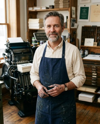 So this is the thing in the middle. A real painter's eye, done by model we spent eighteen months training on 1950s cards, pressed into a PDF the size your local print shop wants. Thirty seconds instead of three weeks. Three dollars instead of three hundred.