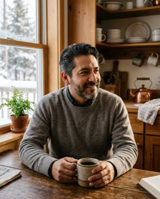 One picture. Family, dog, couple, you at the cabin. Phone shots are fine — the model is trained to look past bad light.